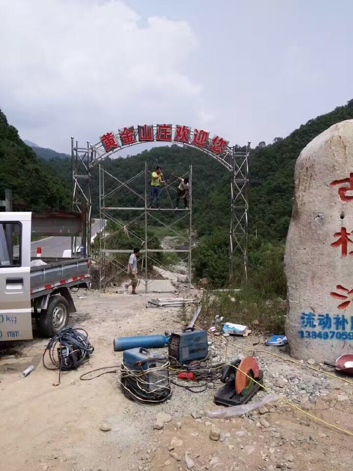 材質(zhì):不銹鋼龍門架,不銹鋼包邊字,不銹鋼板